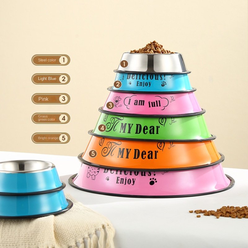 Stainless steel dog bowl; color anti-skid dog bowl