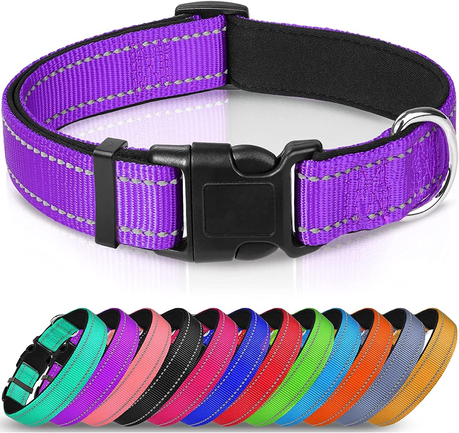 Reflective Dog Collar; Soft Neoprene Padded Breathable Nylon Pet Collar Adjustable for Medium Dogs Reflective Dog Collar; Soft Neoprene Padded Breathable Nylon Pet Collar Adjustable for Medium Dogs Reflective Dog Collar; Soft Neoprene Padded Breathable Nylon Pet Collar Adjustable for Medium Dogs