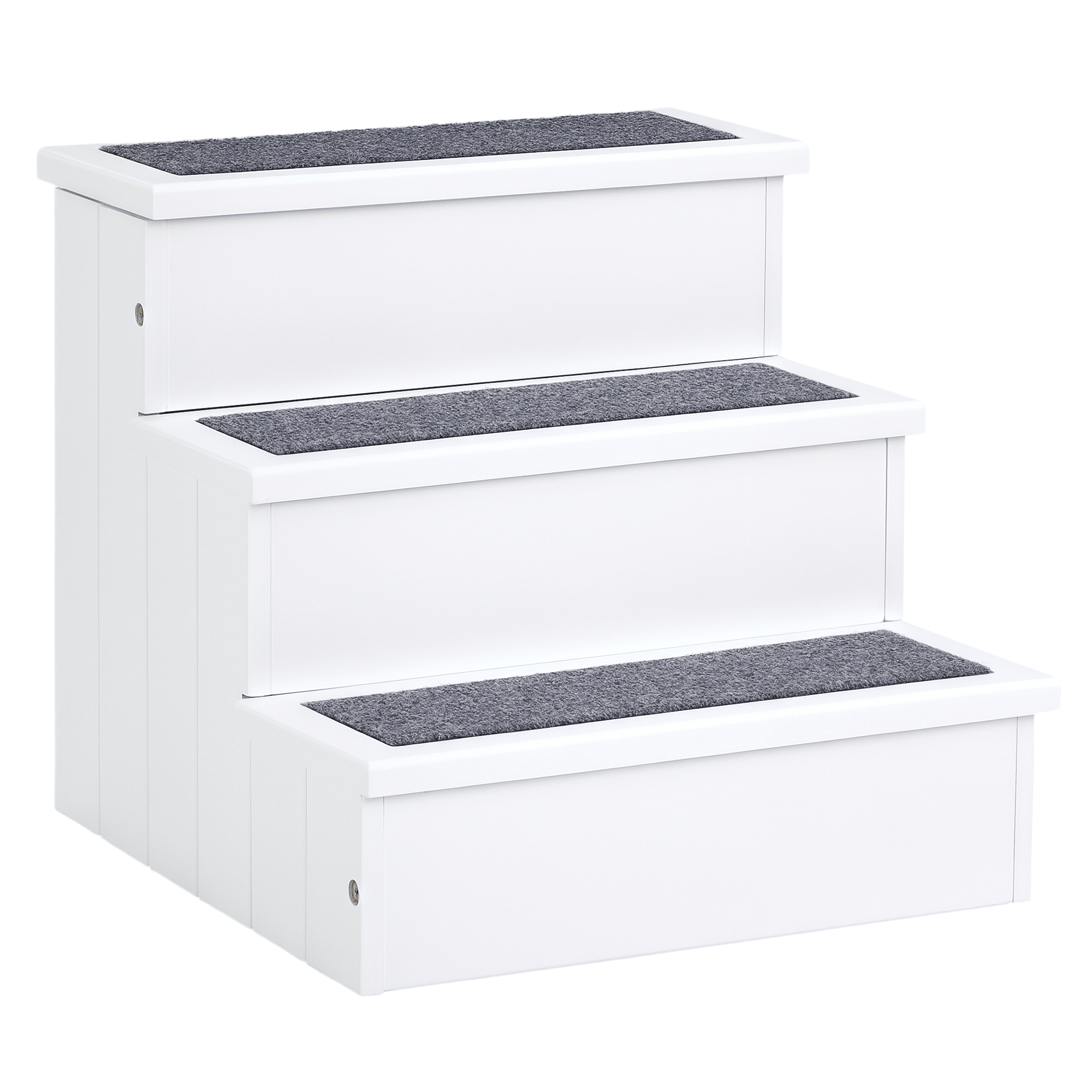 3 Step Wooden Carpeted Non Slip Pet Stairs Ramp for Cats and Small Dogs - White