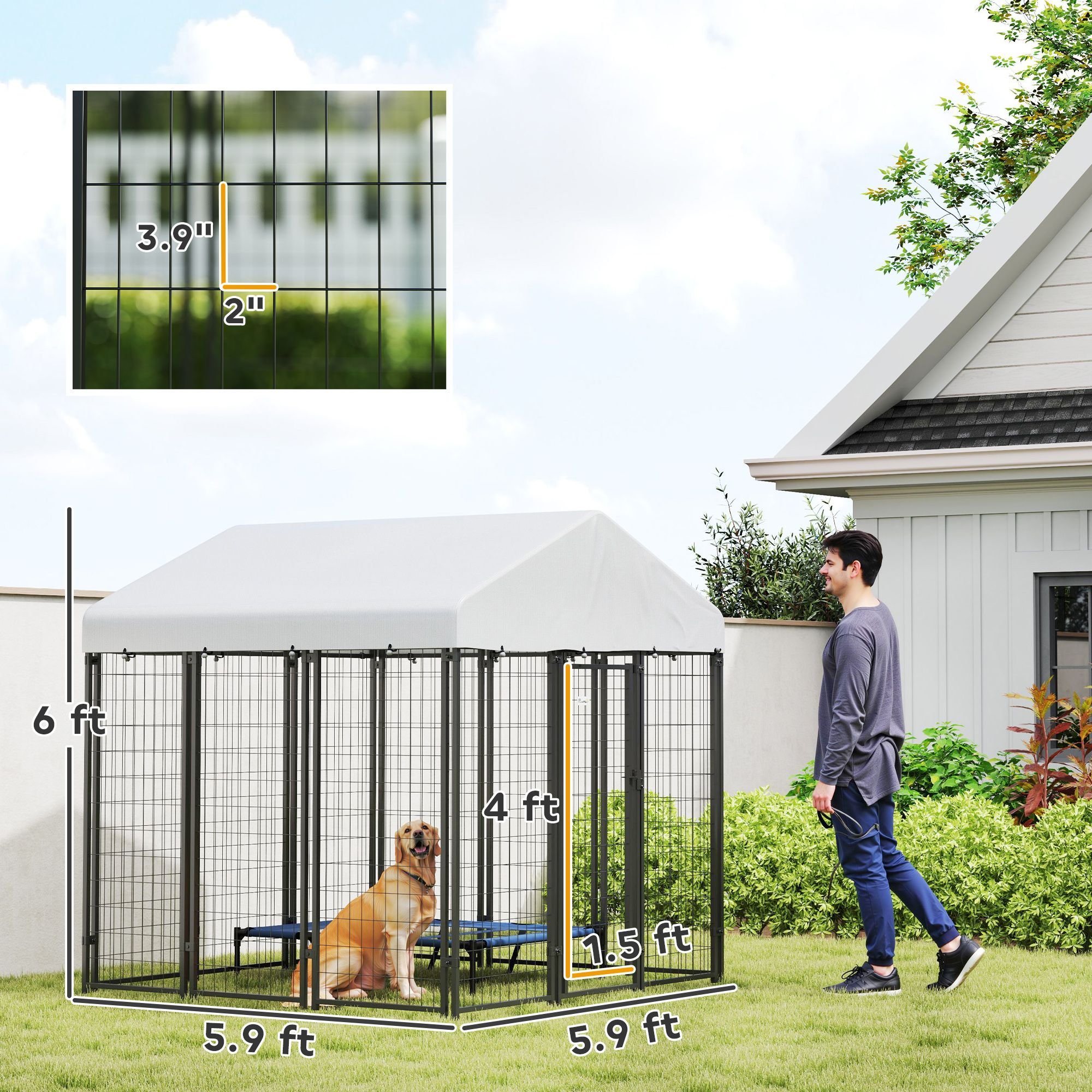 Outdoor Dog Kennel with Roof with Escape-proof Lock, UV-Resistant & Waterproof Cover, 6' x 6' x 6', Silver