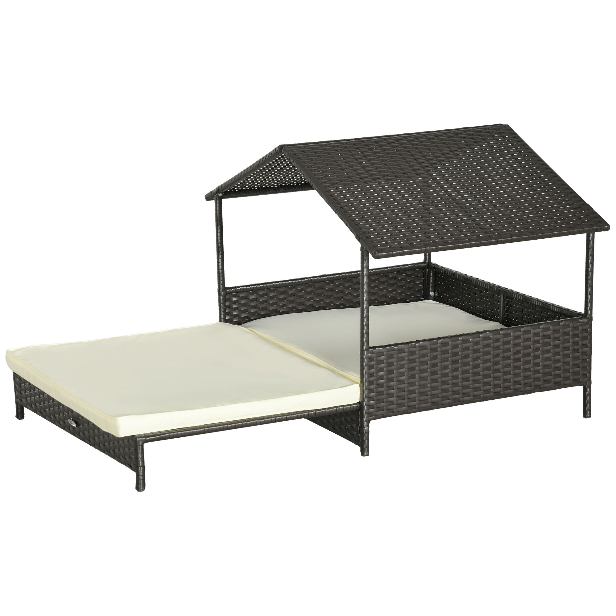 Extendable Wicker Outdoor Dog Bed with Waterproof Roof Soft Cushion Small Medium Dogs Cream White