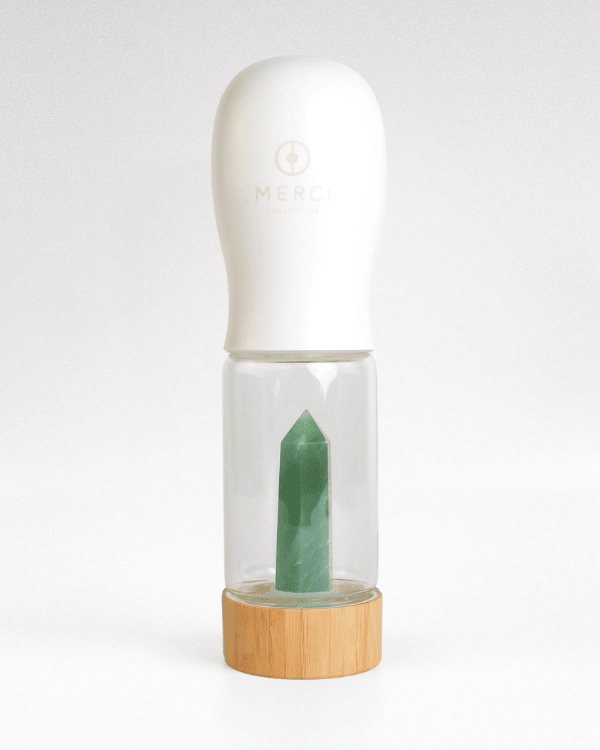 Merci Collective's Urban Oasis crystal-infused water bottle is perfect for any on-the-go adventure.